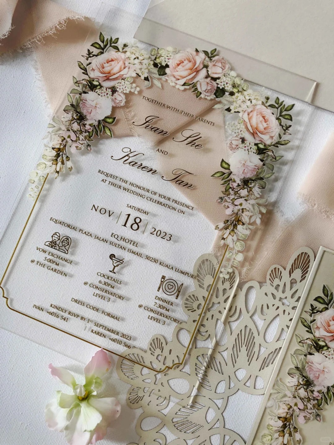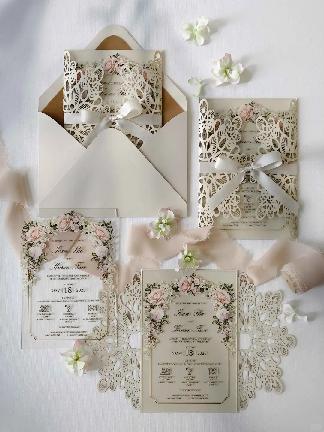 Set Includes: Invitation card + laser-cut sleeve + envelope