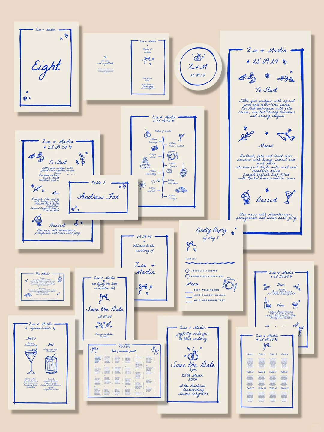 Hand-Drawn Style Wedding Stationery Set
