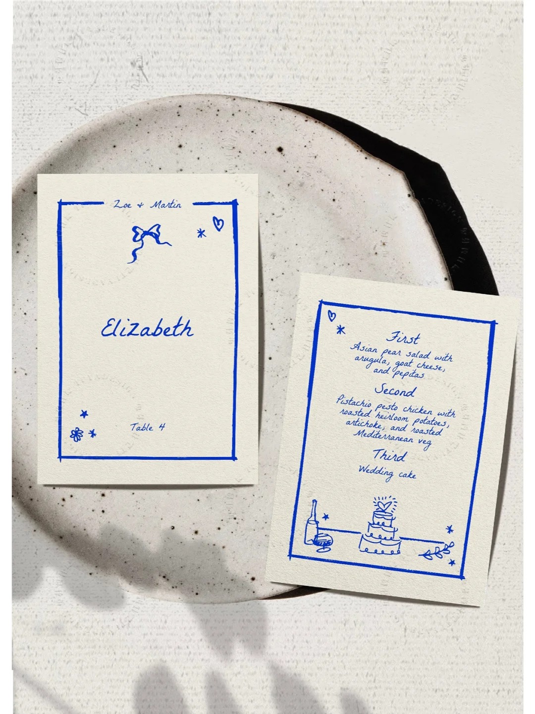 ✅ Place cards💺: Write names, decorate tables. Finding seats becomes a romantic thing~
