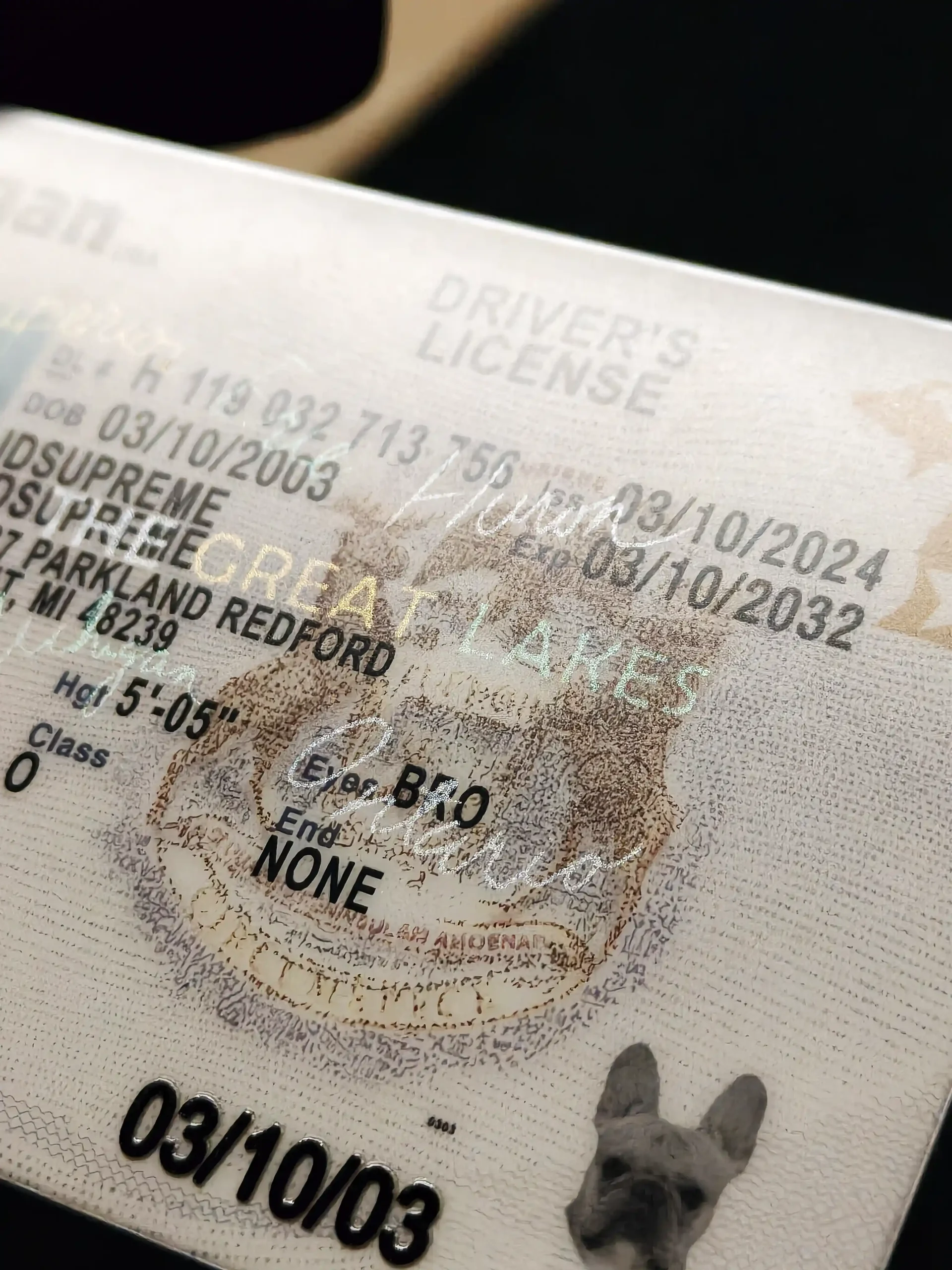 Built to match Michiganβs official driverβs license β clean white and blue layout with subtle state map graphics. Printed on high-quality Teslin with PET laminate for durability and pro-level realism.